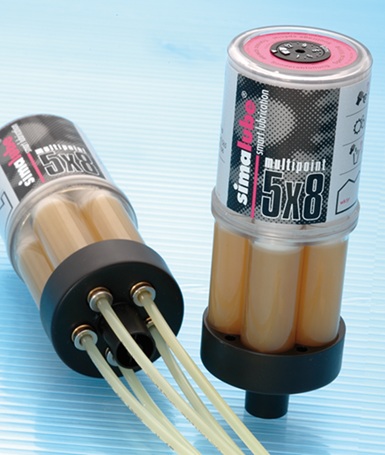 simalube “小保姆”多點式注油器,是全球獨一無二,由5個獨立的8 ml 精密潤滑油倉組成。可設(shè)定1~12個月的使用周期,全自動、均勻、準時、準確的同步注入5個不同的潤滑點。獨特的離合設(shè)計,可于數(shù)秒內(nèi)輕易的把耗盡的注油器卸下更換。
